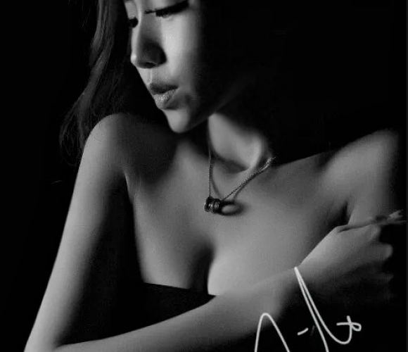 一身白色西装,下半身是白色长裙,披肩黑卷发。黑色墨镜。